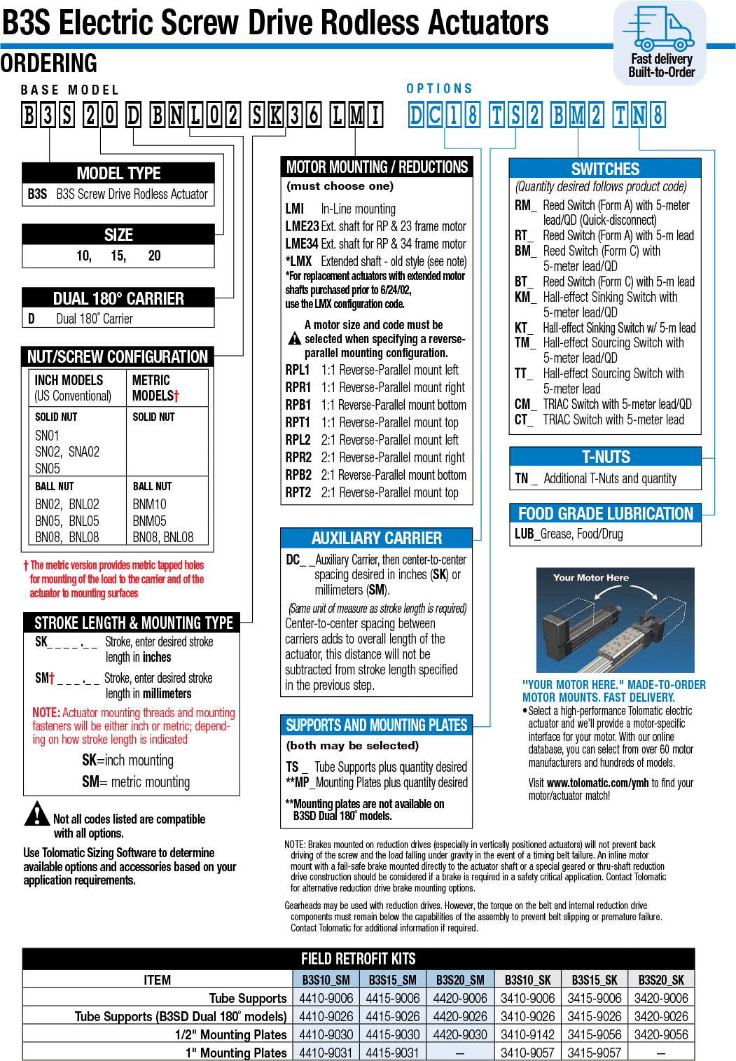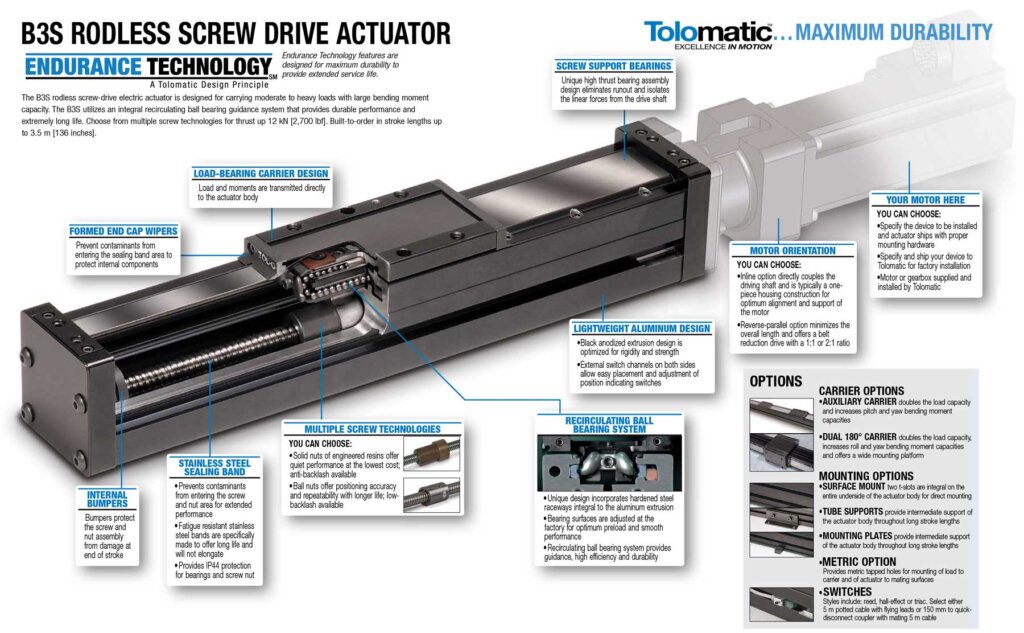 - Halterungen für Ihren bevorzugten Motor mit dem Programm „Your Motor Here®“ von Tolomatic