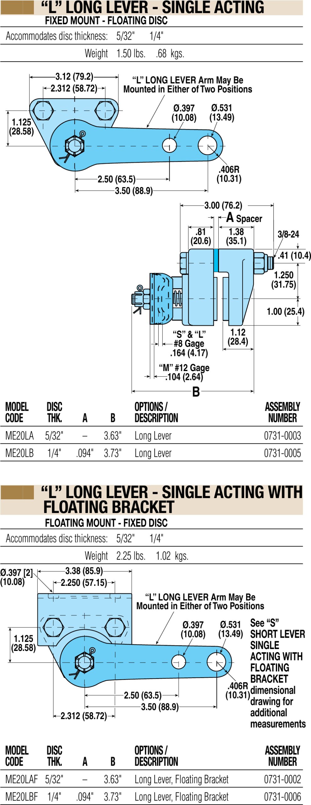 ME20 Langer Hebel, Abmessungen