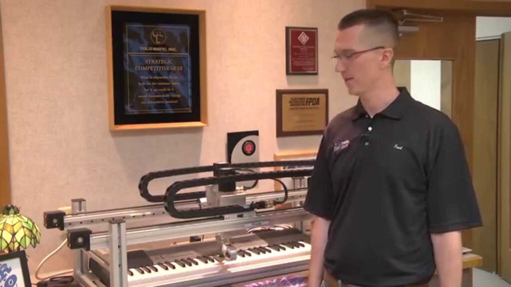 Player piano powered by ERD electric cylinders & MXB electric belt driven actuators