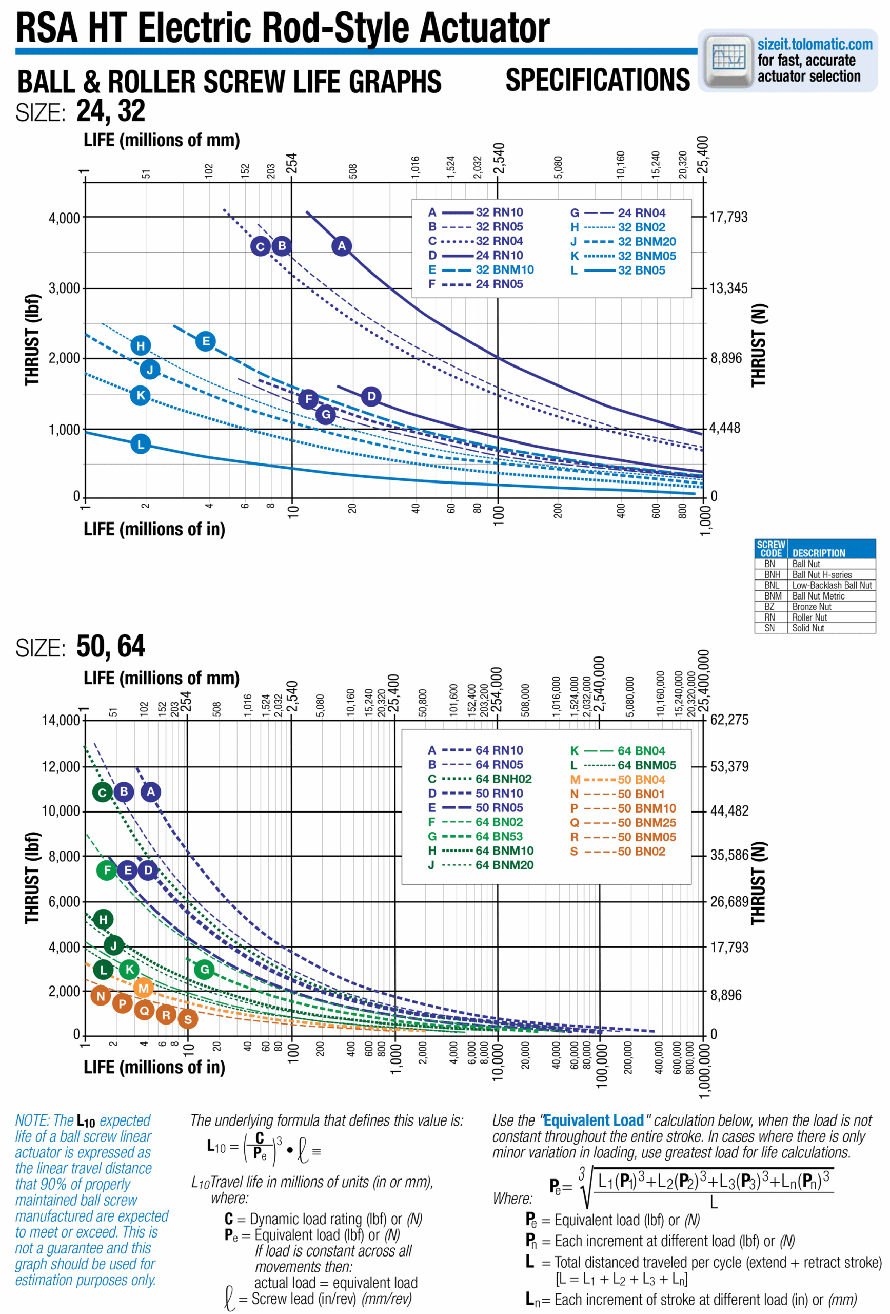RSA Ball & Roller Screw Life Graphs